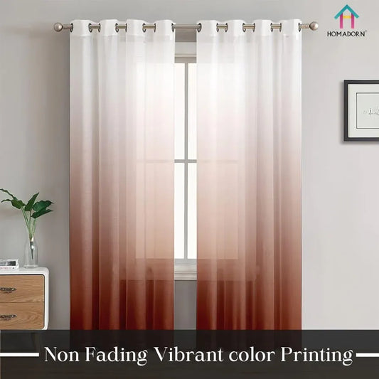 Homadorn Ombre Printed Linen Textured Sheer Curtains Off White