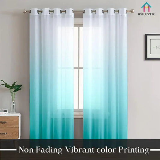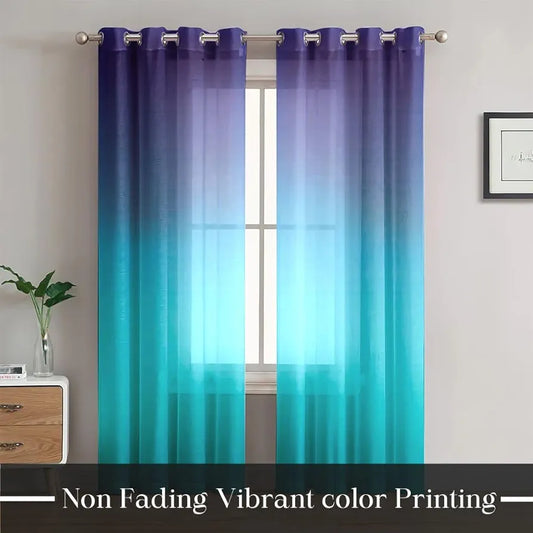 Homadorn Ombre Printed Linen Textured Sheer Curtains Purple + Teal Blue
