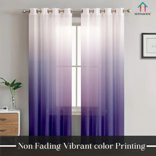 Homadorn Ombre Printed Linen Textured Sheer Curtains White + Purple