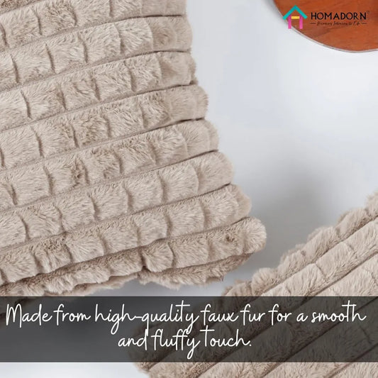 Homadorn Luxury Plush Fur Reversible Cushion Cover Ultra Soft & Cozy Beige