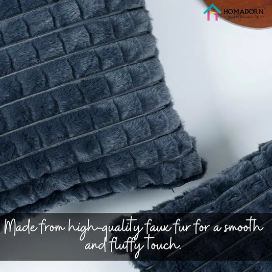 Homadorn Luxury Plush Fur Reversible Cushion Cover Ultra Soft & Cozy Grey