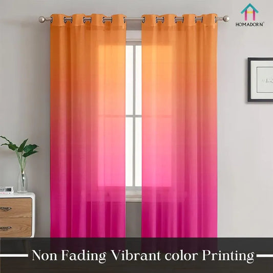 Homadorn Ombre Printed Linen Textured Sheer Curtains Orange + Pink