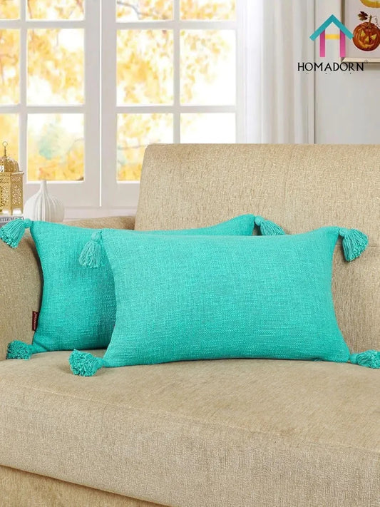 Homadorn Luxury Cotton Handmade Decorative Boho Throw Pillow Covers Turquoise