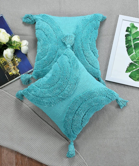 Homadorn Luxury Cotton Handmade Decorative Boho Throw Tufted Pillow Covers Turqouise