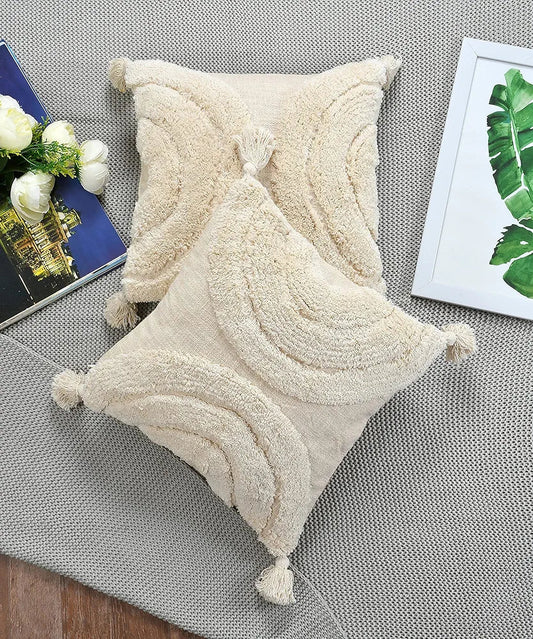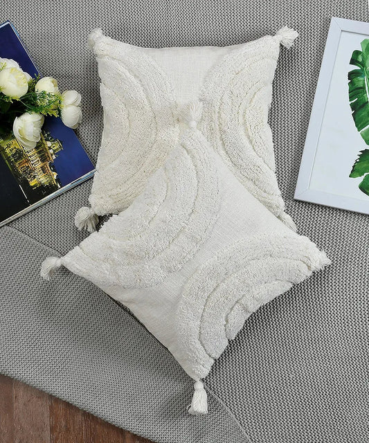 Homadorn Luxury Cotton Handmade Decorative Boho Throw Tufted Pillow Covers Off White