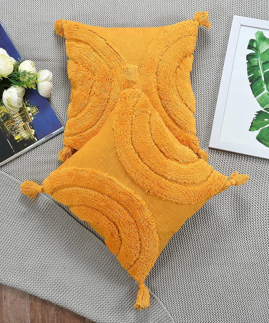 Homadorn Luxury Cotton Handmade Decorative Boho Throw Tufted Pillow Covers Mustard