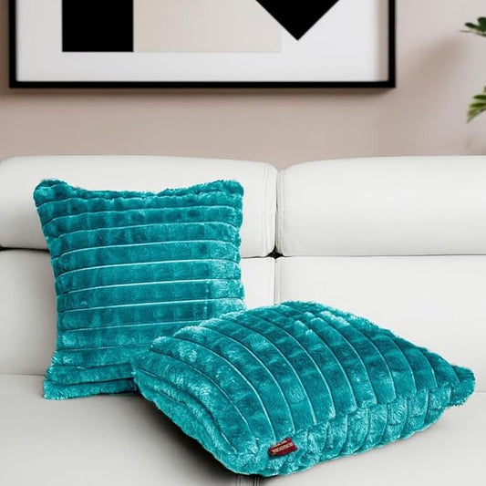 Homadorn Luxury Plush Fur Reversible Cushion Cover Ultra Soft & Cozy Teal