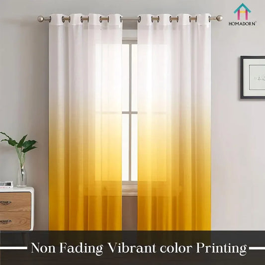 Homadorn Ombre Printed Linen Textured Sheer Curtains Yellow + Grey