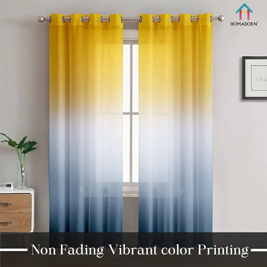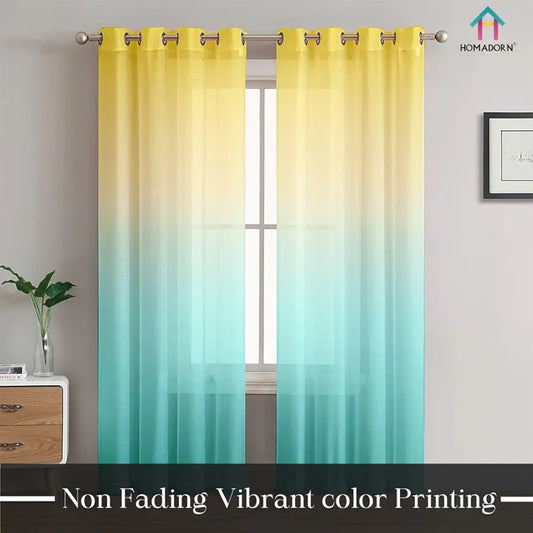 Homadorn Ombre Printed Linen Textured Sheer Curtains Yellow + Sky