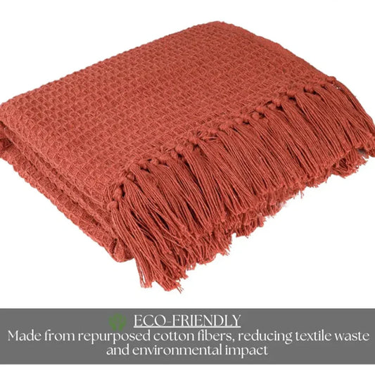 Homadorn Waffle Weave Cotton Throw Blanket Colour Rust