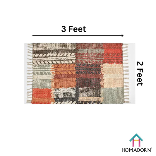 HomadornHandmade Sustainable Printed Modern Dhurrie/Rugs/Carpet Colour Multicolor 019