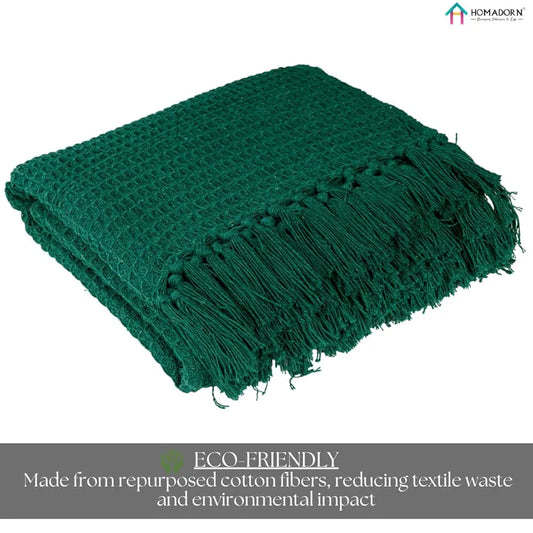 Homadorn Waffle Weave Cotton Throw Blanket Colour Bottle Green