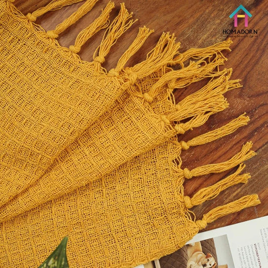 Homadorn Waffle 100% Cotton Throw Blanket Colour Mustard