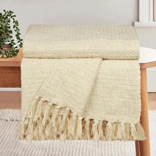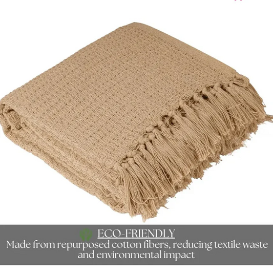 Homadorn Waffle Weave Cotton Throw Blanket Colour Beige