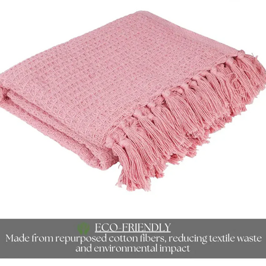 Homadorn Waffle Weave Cotton Throw Blanket Colour Pink