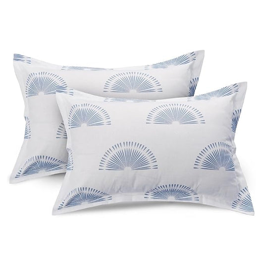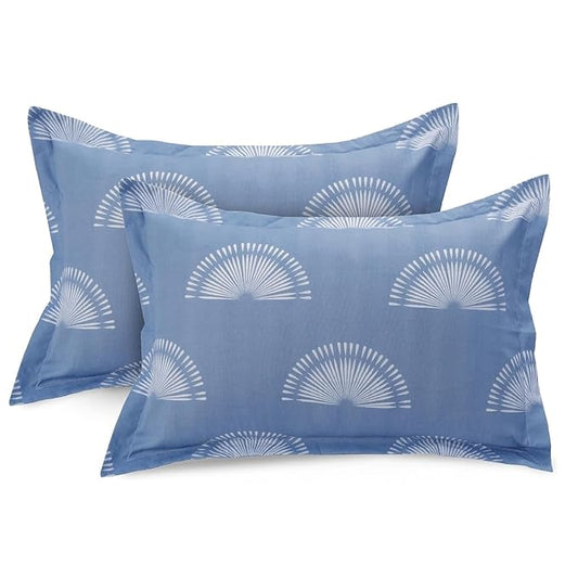 Huesland by Ahmedabad Cotton 144 Tc Bedsheet for King Size Bed With 2 Pillow Covers | Sunrise | Powder Blue & White