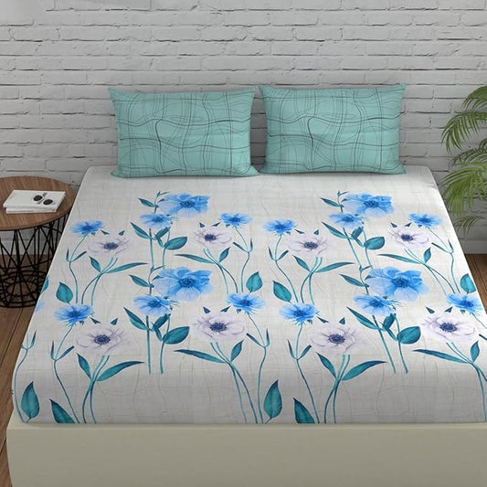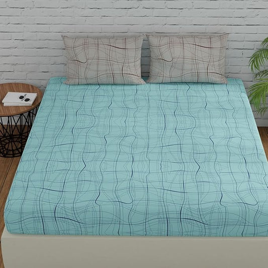 Huesland by Ahmedabad Cotton 144 TC Bedsheet for King Size Bed with 2 Pillow Covers | Tame Teal & Blue