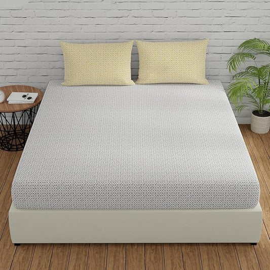 Huesland by Ahmedabad Cotton 144 TC Bedsheet for King Size Bed with 2 Pillow Covers | Yellow & White