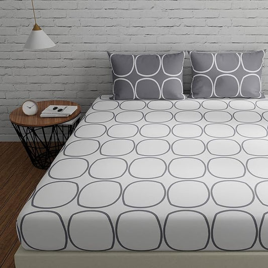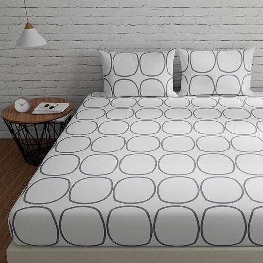 Huesland by Ahmedabad Cotton 144 TC Bedsheet for King Size Bed with 2 Pillow Covers | White (Grey Circles)