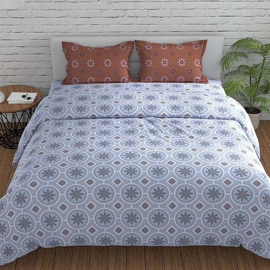 Huesland by Ahmedabad Cotton 144 TC Cotton Bedsheet for Double Bed King Size with 2 Pillow Covers | Mandala | Brown & Grey