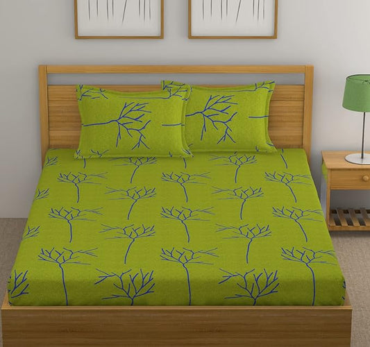 Huesland by Ahmedabad Cotton 144 TC Cotton King Size Bedsheet with 2 Pillow Covers - Green