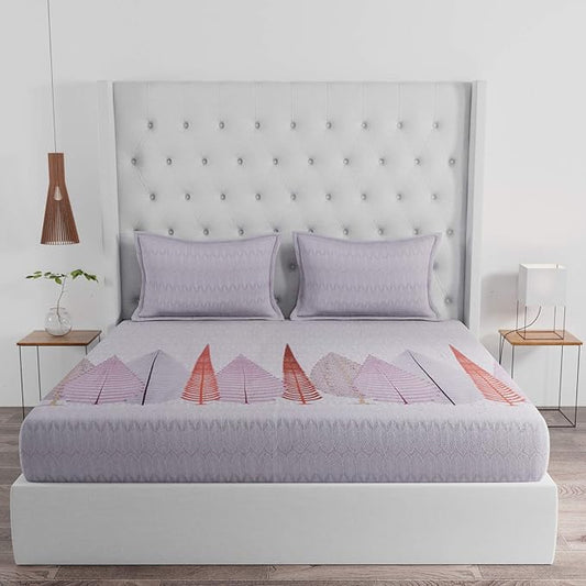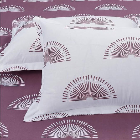 Huesland by Ahmedabad Cotton 144 TC Cotton Bedsheets for King Size Bed with 2 Pillow Covers | Sunrise | Grape Purple & White