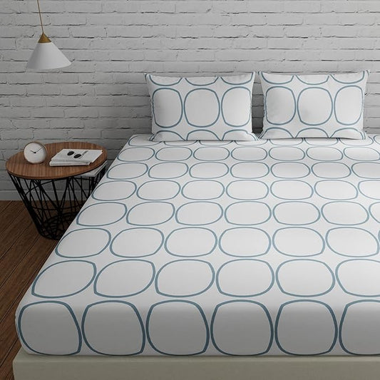Huesland by Ahmedabad Cotton 144 TC Cotton Bedsheets for King Size Bed with 2 Pillow Covers | White, Cyan Blue & Grey