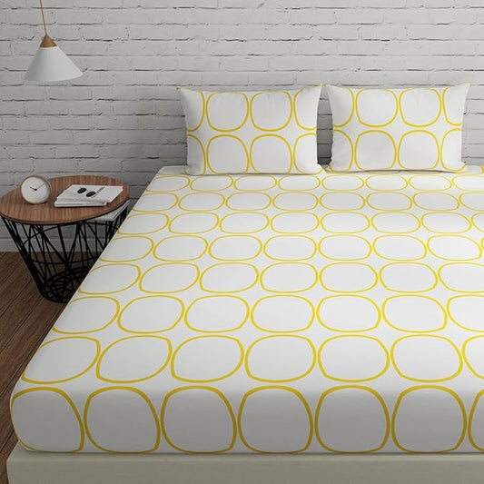 Huesland by Ahmedabad Cotton 144 TC Cotton Bedsheets for King Size Bed with 2 Pillow Covers | White (Yellow Circles)