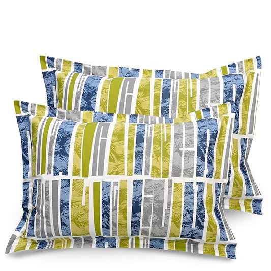 Huesland by Ahmedabad Cotton 144 TC Cotton King Size Bedsheet with 2 Pillow Covers - Blue, Green & Grey