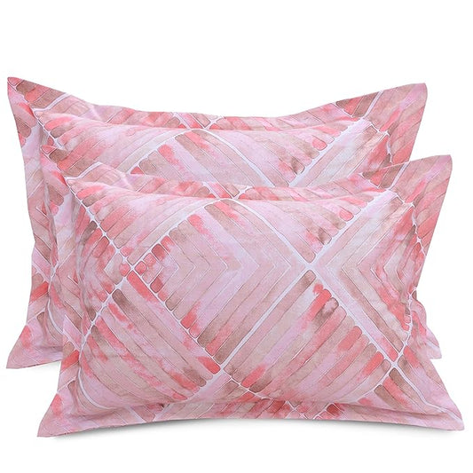 Huesland by Ahmedabad Cotton 144 TC Cotton King Size Bedsheet with 2 Pillow Covers - Beige, Pink, Green