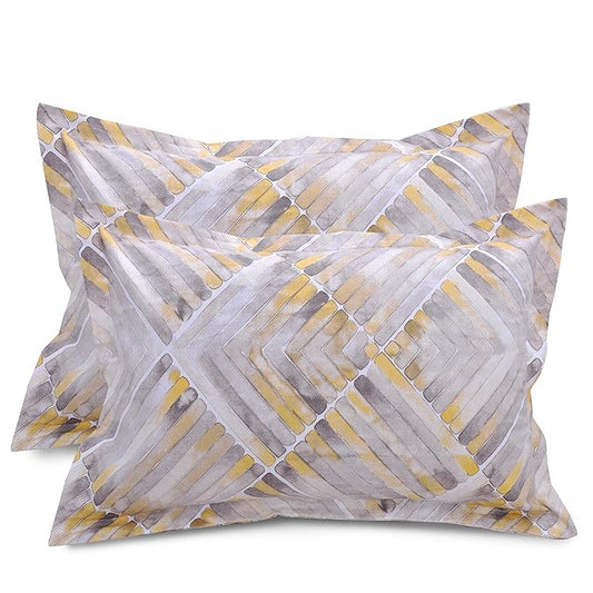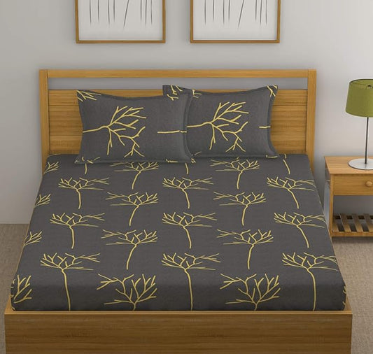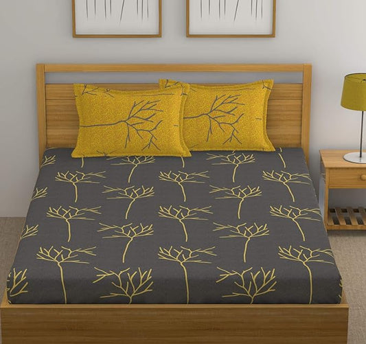Huesland by Ahmedabad Cotton 144 TC Cotton King Size Bedsheet with 2 Pillow Covers - Grey & Yellow