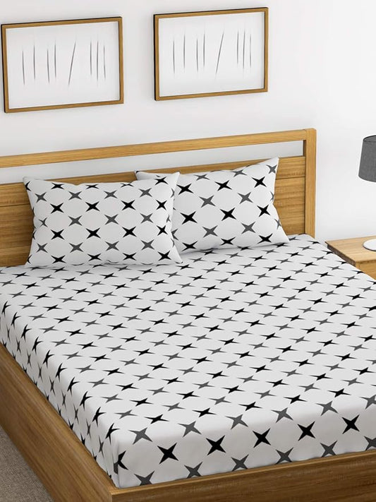 Huesland by Ahmedabad Cotton 144 TC Cotton King Size Bedsheet with 2 Pillow Covers - White, Grey