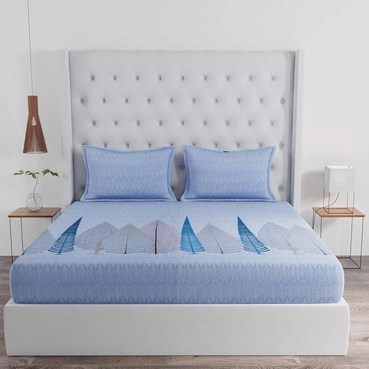 Huesland by Ahmedabad Cotton 144 TC Cotton King Size Bedsheet with 2 Pillow Covers - Sky Blue