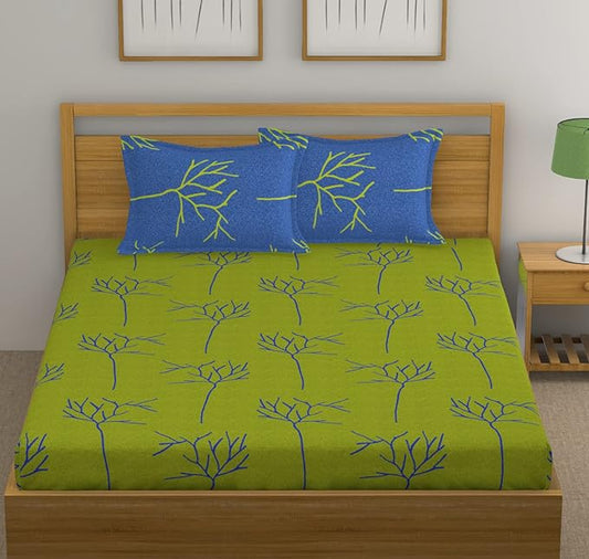 Huesland by Ahmedabad Cotton 144 TC Cotton King Size Bedsheet with 2 Pillow Covers - Green & Blue