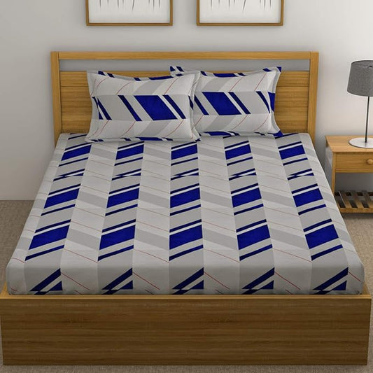 Huesland by Ahmedabad Cotton 144 TC Cotton King Size Bedsheet with 2 Pillow Covers - Grey & Blue