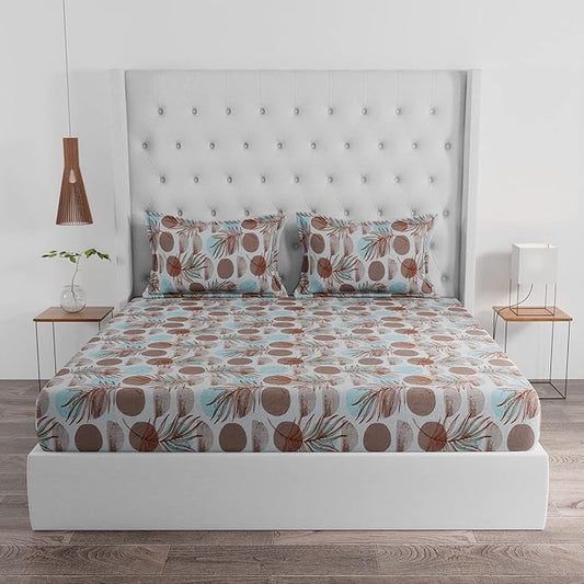 Huesland by Ahmedabad Cotton 144 TC Cotton King Size Bedsheet with 2 Pillow Covers - White & Brown