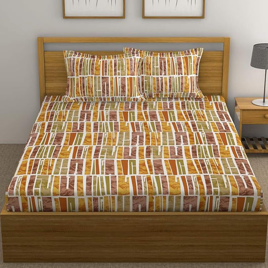 Huesland by Ahmedabad Cotton 144 TC Cotton King Size Bedsheet with 2 Pillow Covers - Orange, Green & Brown