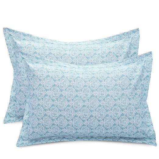 Huesland by Ahmedabad Cotton 144 TC Cotton King Size Bedsheet with 2 Pillow Covers - Turquoise Blue