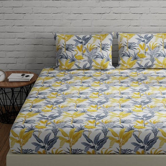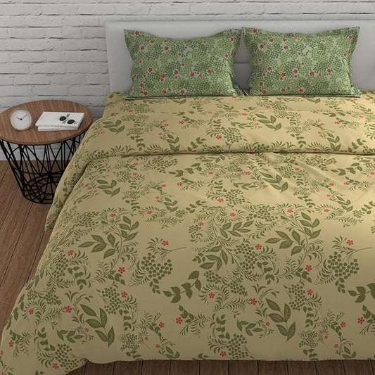 Huesland by Ahmedabad Cotton 144 TC King Size Bedsheet Cotton with 2 Pillow Covers | Botanical Bliss | Vanilla & Green