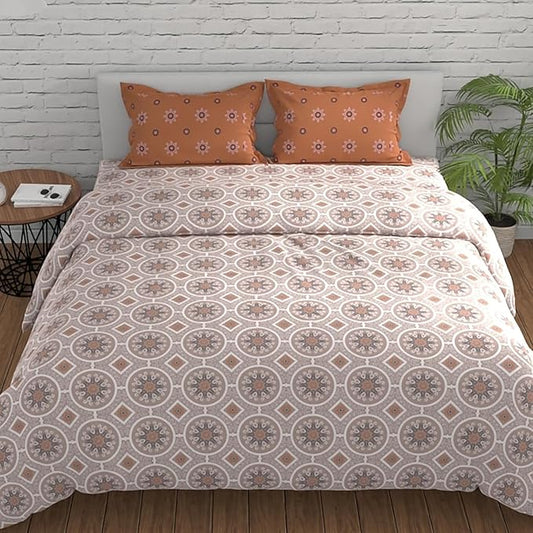Huesland by Ahmedabad Cotton 144 Tc King Size Bedsheet Cotton With 2 Pillow Covers | Mandala | Orange & Brown