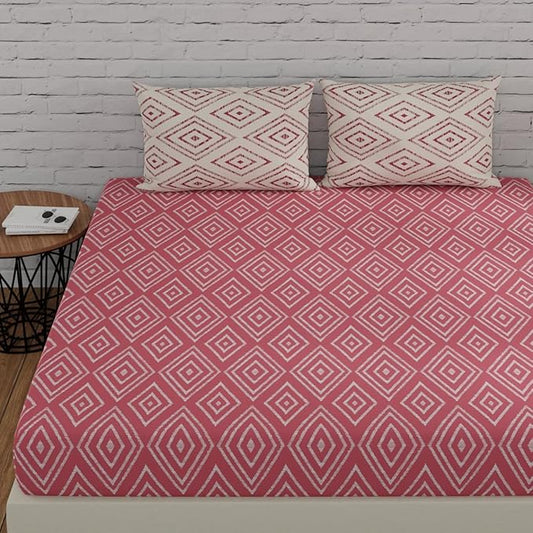 Huesland by Ahmedabad Cotton 144 TC King Size Bedsheet Cotton with 2 Pillow Covers | Peach Pink & White