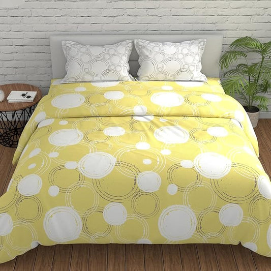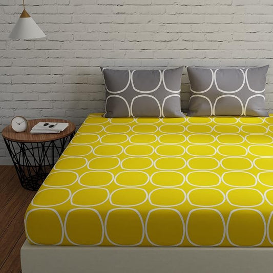 Huesland by Ahmedabad Cotton 144 TC King Size Bedsheet Cotton with 2 Pillow Covers | Sphere | Yellow & Off White
