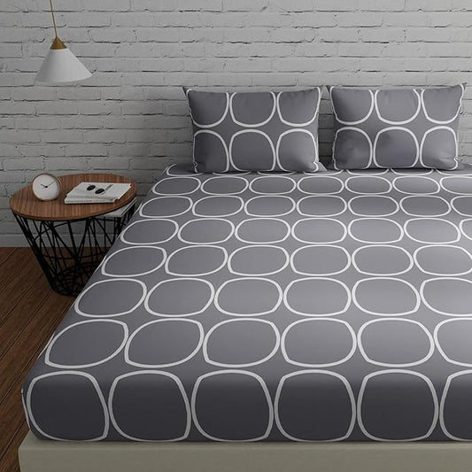 Huesland by Ahmedabad Cotton 144 Tc King Size Bedsheet Cotton with 2 Pillow Covers | Grey