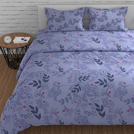 Huesland by Ahmedabad Cotton 144 TC King Size Bedsheet Cotton with 2 Pillow Covers | Botanical Bliss | Light Purple, Blue & Grey