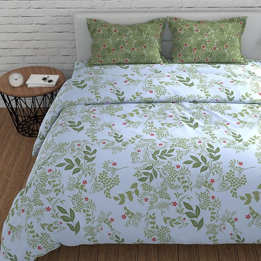 Huesland by Ahmedabad Cotton 144 TC King Size Bedsheet Cotton with 2 Pillow Covers | Botanical Bliss | White & Green