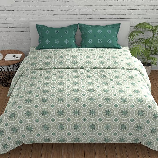 Huesland by Ahmedabad Cotton 144 TC King Size Bedsheet Cotton with 2 Pillow Covers | Mandala | Dark Green & Light Green