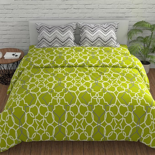 Huesland by Ahmedabad Cotton 144 TC King Size Bedsheet Cotton with 2 Pillow Covers | Green & Grey