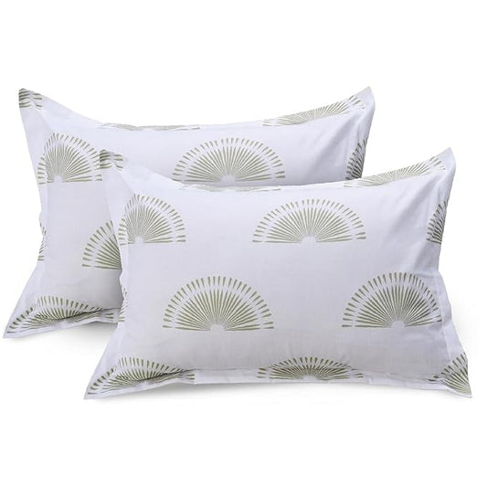 Huesland by Ahmedabad Cotton 144 TC King Size Bedsheet Cotton with 2 Pillow Covers | Sunrise | Basil Green & White