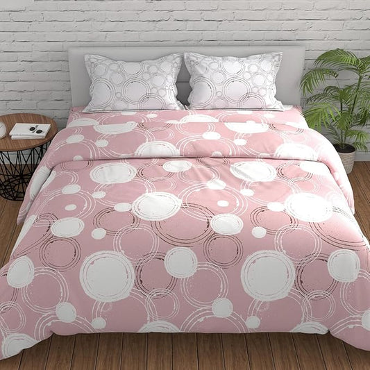 Huesland by Ahmedabad Cotton 144 TC King Size Bedsheet Cotton with 2 Pillow Covers | Sphere | Pastel Peach & Off White