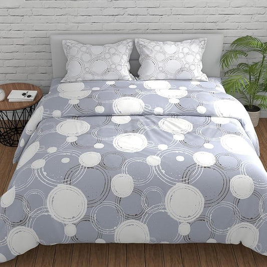 Huesland by Ahmedabad Cotton 144 TC King Size Bedsheet Cotton with 2 Pillow Covers | Sphere | Grey & Off White